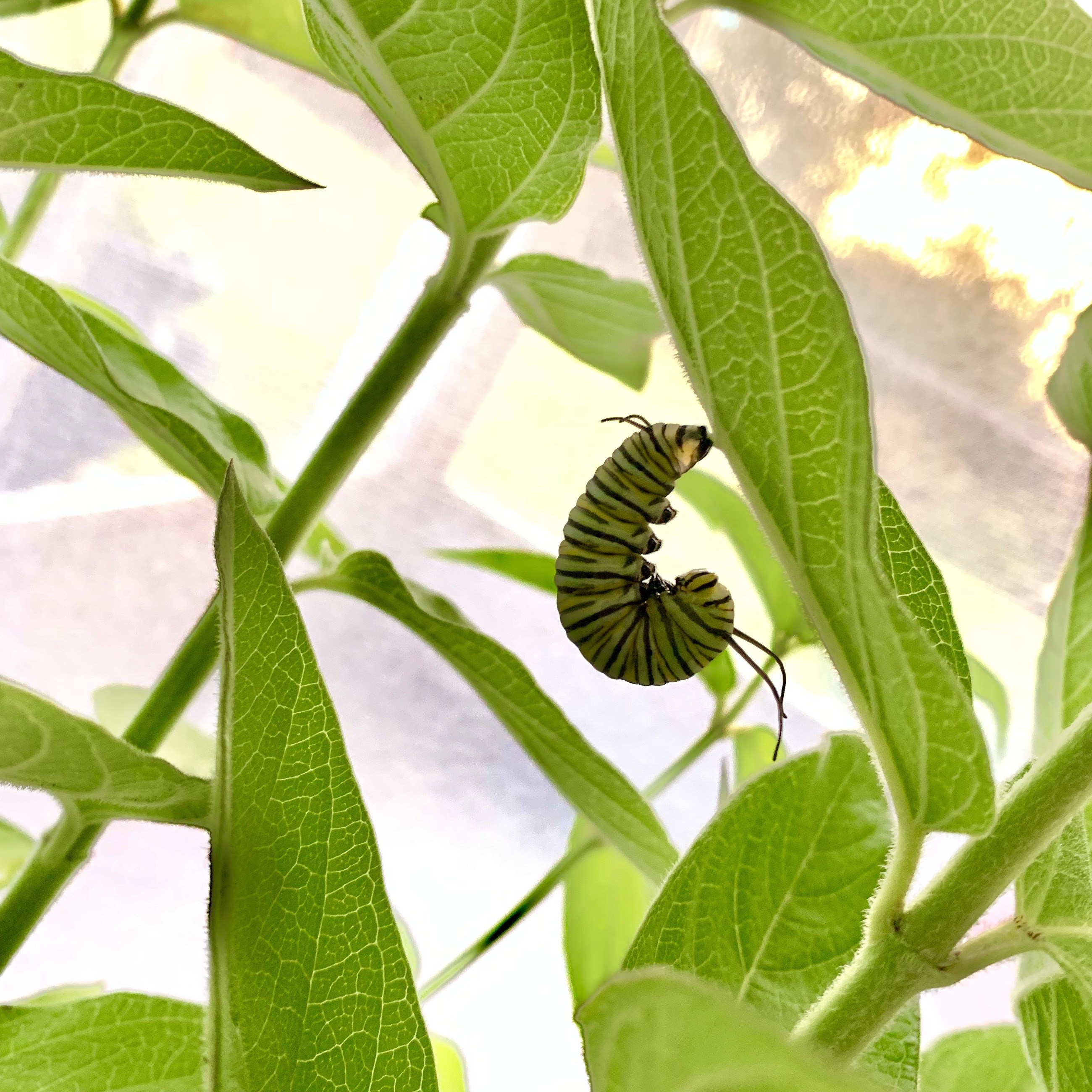 Milkweed dries out quickly without a water source, so if you place cut leaves directly in their habitat, you’ll have to refresh them several times a day. If you forget, they will die, so I’ve found this to be the best solution since the milkweed will now last several days. An additional bonus is that the cute, fuzzy little milkweed seeds from the mother plant plant themselves and emerge next year, so I’ll never have to repurchase milkweed–it’s everywhere now.